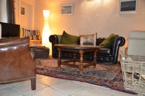 The seating area: 2 sofas, 2 giant bean bags, coffee table, free WiFi, a screen/dvd player, films and books, puzzles and games.